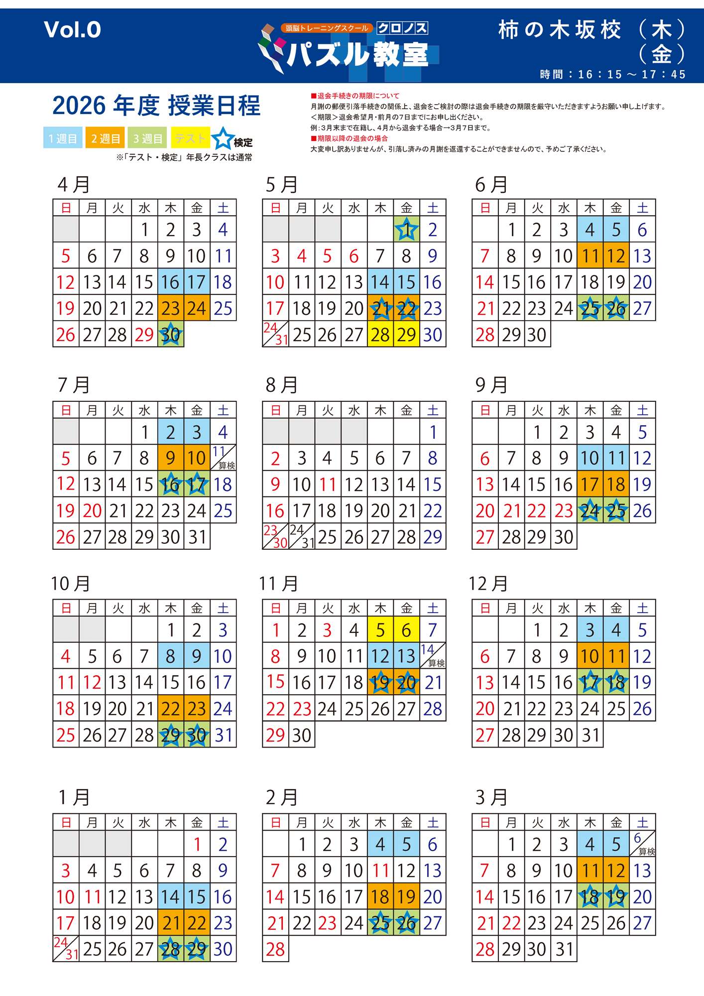 小学生クラス授業日程